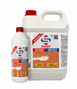 De Super Witte Aanslag Verwijderaar van SuperCleaners is speciaal ontwikkeld om hardnekkige witte aanslag, kalkuitbloei en zoutuitslag effectief te verwijderen van gevels en metselwerk. Dit krachtige middel biedt verschillende voordelen: